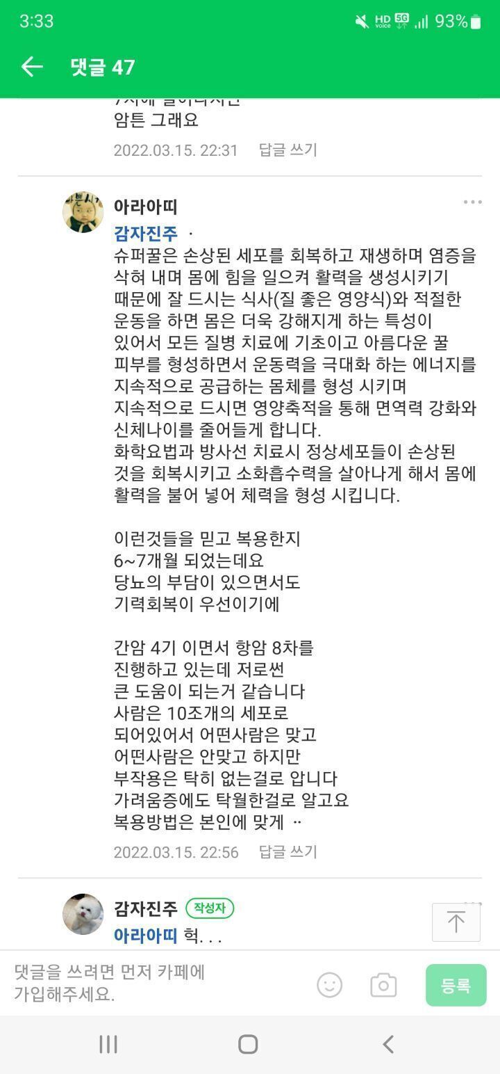 아래분은 기회가 있어 간카페에서 슈퍼꿀40미리를 나눔을 신청하셨고 이유는 너무 힘이 없어서 ....